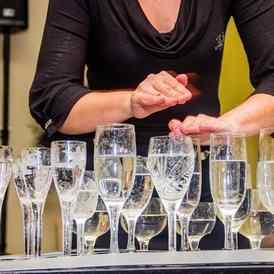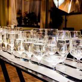 Но какой праздник без сюрпризов? Своим клиентом ведущая дарит уникальный номер — игру на бокалах с водой.